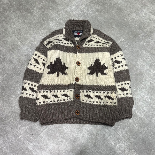 90s 『INDIAN SWEATER』 Cowichan Sweater 90年代のカナダ製のリーフ柄カウチンです。糸の厚みもさることながら、サイズ感も存在感を与えてくれるアイテムとなっております。 焼印の入った切り出しのウッドボタンも最高ですね。 1990年代 COLOR : Ivory SIZE : - ACTUAL SIZE : 着丈約74cm , 身幅約62cm , 袖丈約62cm , 肩幅約61cm MATERIAL :Wool Made in Canada こちらはUSED / VINTAGEのアイテムです。状態画像にて確認をお願いいたします。 また撮影状況によって実際の色味と誤差がある場合がございます。