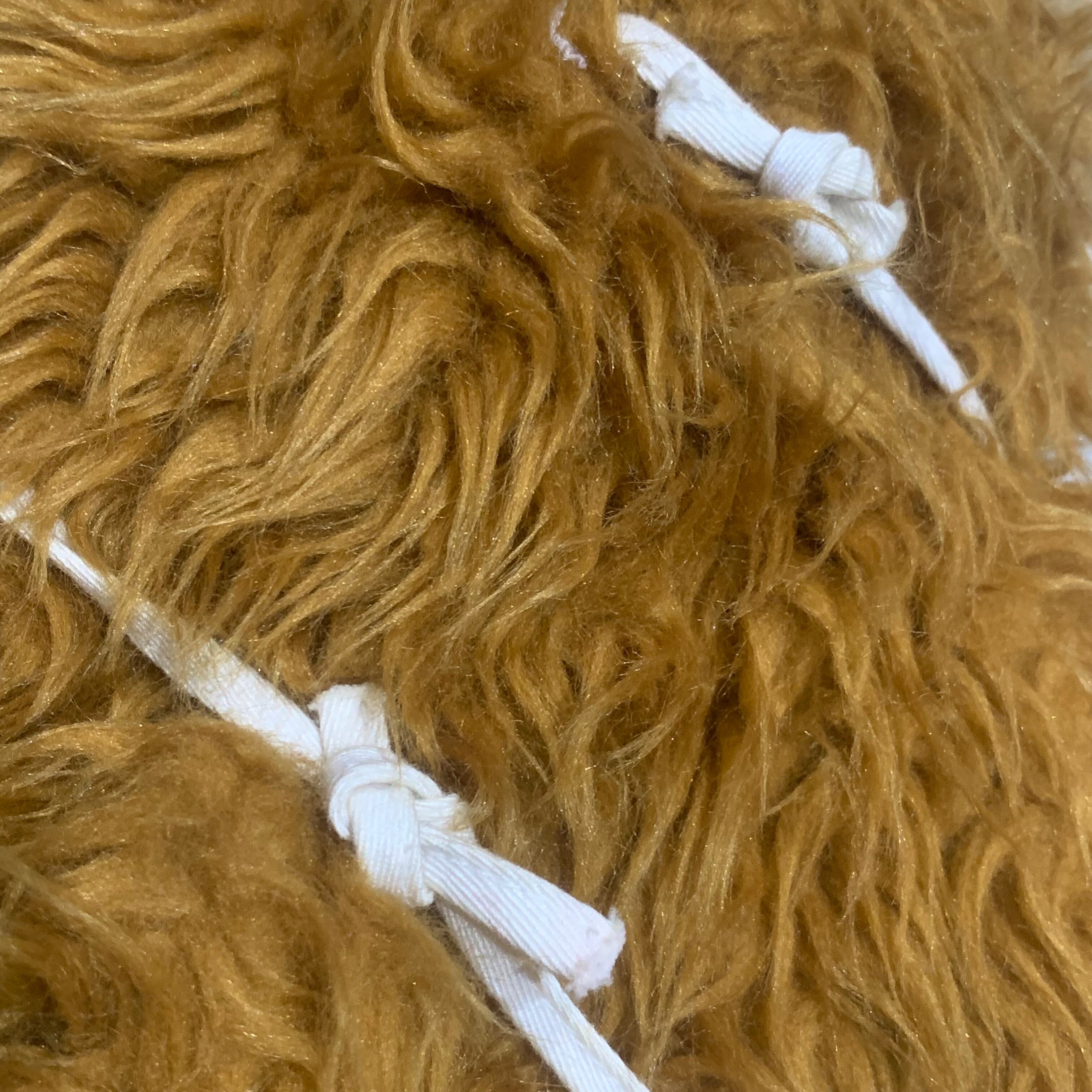 目はプラスチック、顔や歯などは化繊の生地、体毛や髪の毛は長い毛足の化繊となります。