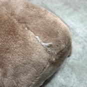 こちらの個体は底面ペレットがずれてしまっている為自立しにくいです(お尻の後側を支点にするとなんとか自立します)。